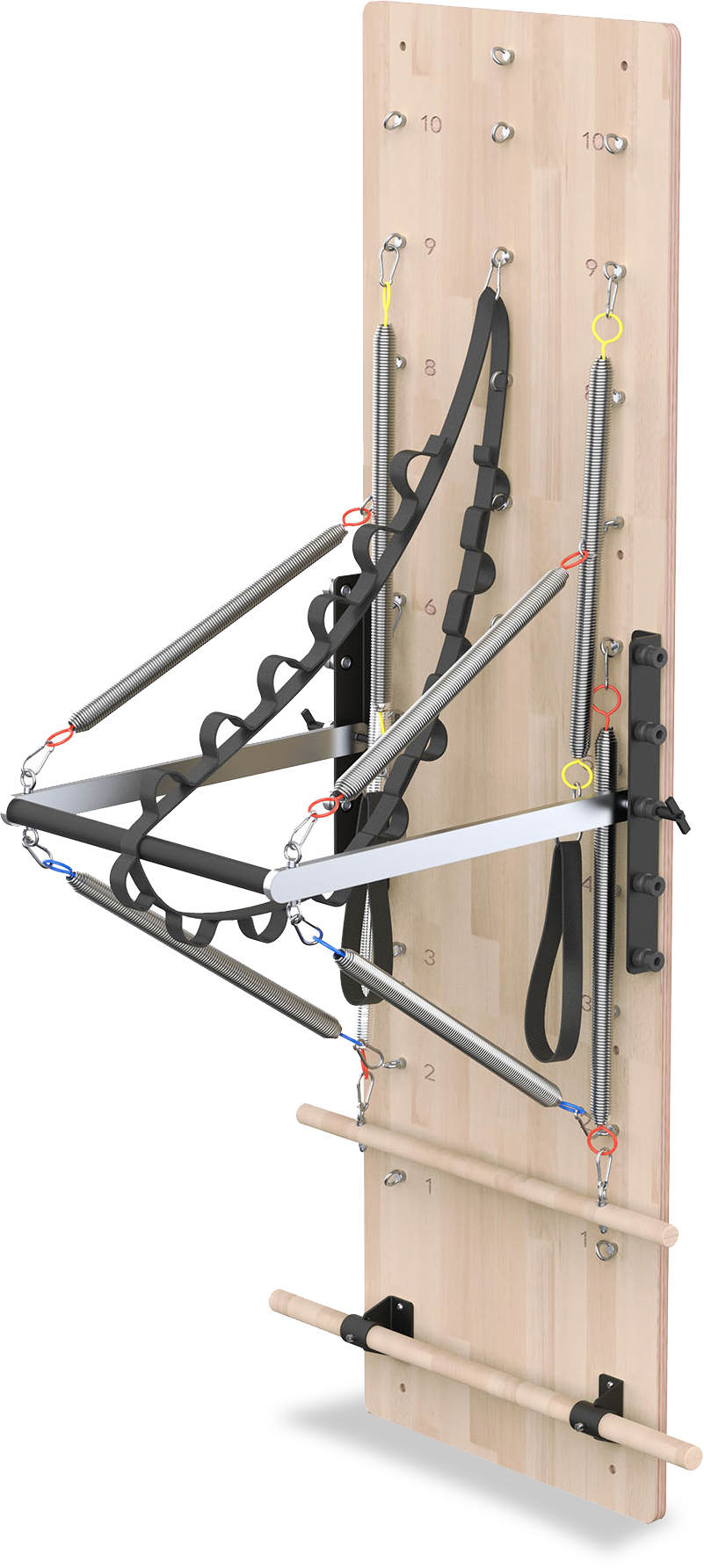 TIP UREĐAJA: Pilates Spring Wall Unit (zidna jedinica)NAMJENA UPORABE: Profesionalna i poluprofesionalna upotreba (pilates studiji, fizioterapija, rehabilitacija, kućna upotreba)OKVIR: Prirodni hrast (oak wood) i aluminijOPRUGE: 8 kaljenih high-carbon čeličnih opruga (4 standardne + 4 duge)PRIČVRSNE TOČKE: 23 točke za pričvršćivanje opruga — visoka prilagodljivost treningaOPREMA: Push-Through Bar s 5-stupanjskim podešavanjem visine, Roll-Down Bar od kanadskog javora, Ergonomske ručke i nožni remeni, Sigurnosni pojas s karabineromMONTAŽA: Zidna montažaMAKS. TEŽINA KORISNIKA: 150 kgDIMENZIJE UREĐAJA: 1830 × 600 × 800 mmTEŽINA UREĐAJA: 30 kgSTANDARDI: EN ISO 20957-1 / EN ISO 20957-2, razred S